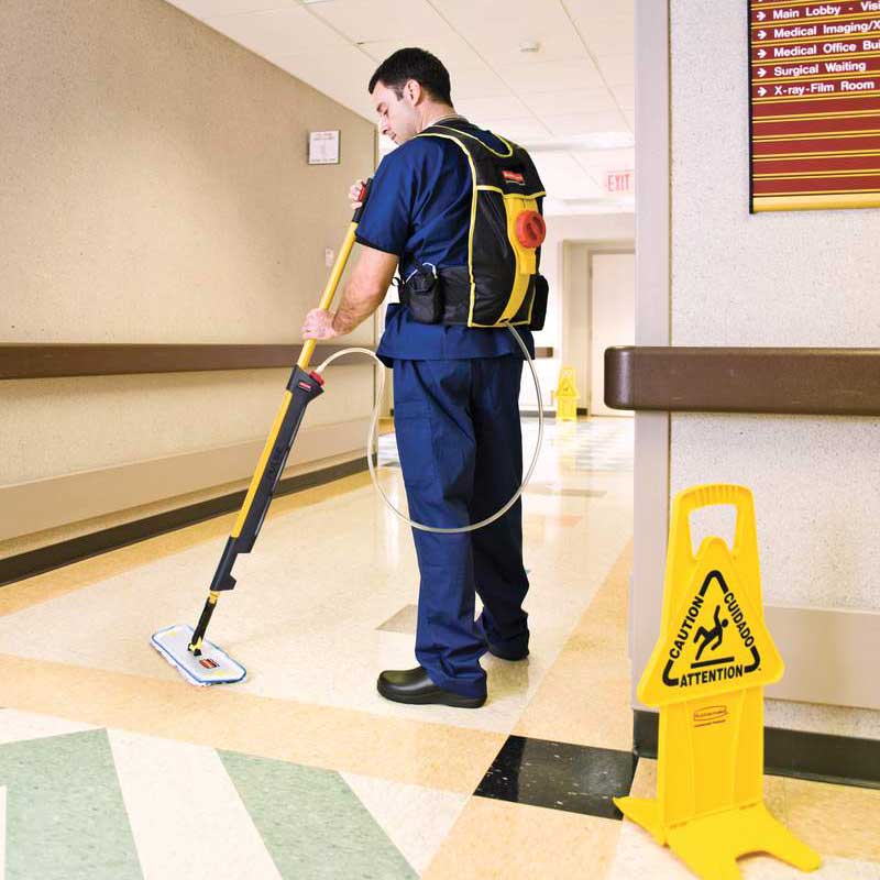 L’abbinamento di Rubbermaid Pulse con il sistema High-capacity FLOW Backpack, aiuta a ridurre i costi di manodopera e migliora la produttività ed il benessere dell’operatore. Ideale per la rimozione delle macchie e per pulire dove non è possibile portare un secchio (scale, stazioni metropolitana ecc..)